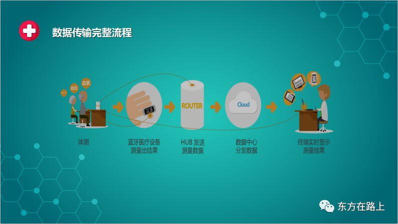portant; word-wrap: break-word !important;">下面是测量数据自动传输的流程:设备采集数据后,通过蓝牙通讯和网络传输至数据中心,数据中心分发数据至各端口,终端实时显示测量结果;